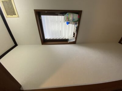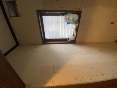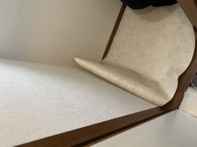 既存クロス撤去完了後、新しいクロス、新しいクッションフロアを貼り替えます