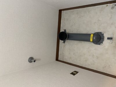 クッションフロアまで貼り替え完了後、トイレを据付します