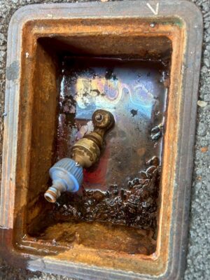 水道メーターを開け、通水テストを行います。