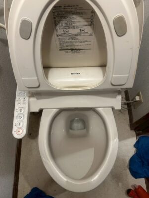 解体完了後、新しいトイレを設置していきます