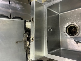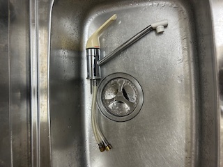 止水栓を止め、厨房シンクをずらし、水栓を取り外していきます。