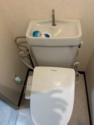 最後にウォシュレットを取り付け全て接続後通水テストを行います